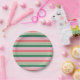 Small Coral, Pink and Green Stripes Paper Plate