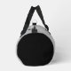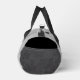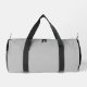 This small duffel bag is shown in a solid colour of light grey with black straps and accents.
