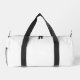 This small duffel bag is shown in a solid colour of white with black straps.