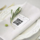 QR Code Share the Love Cards - Elegant Luxury Script: Place these small 2.5 inch cards at your wedding reception tables so guests can scan to upload the photos they took at your wedding reception to your album or social media.
