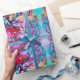 Whimsical ,colourful ,vibrant enchanted fairy woods in the moon light .Acrylic -watercolor painting with gold sparkles,golden foil and iridescent colours.