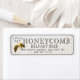 Eye-catching label for honeycomb in plastic honeycomb container. Personalize with your apiary name, address and product net weight. Yellow and gold iridescent honeycomb design in background, complete with its own realistic honeybee.
