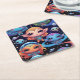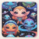 Small Multicoloured Aliens in Space Square Paper Coaster