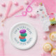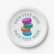 Small paper plates with coloured macarons drawing. Elegant typography template for personalized text. Stylish party supplies for Birthday, Christmas, Holidays, wedding, dinner party, baby shower, baking lessons and more. Great for serving French pastry, macaroon cookies, homemade food, cake, desserts, sweets, treats and more. Available in small and large sizes. Beautiful pastel watercolor design.
