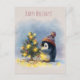 Small penguin decorates tiny Christmas tree, Holiday Postcard