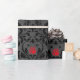 Small blood red roses are inside of black damask designs over a dark grey background. Please see the "seam" image preview to make sure it is acceptable.