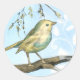 Small Yellow Bird Perched on a Branch Looking up Classic Round Sticker