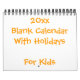 In small 2020 Blank Calendar With Holidays for kids you can find playful yellow changeable text on front page. You can easily add your photos or leave it simply white. Calendar measures 5.5 inches by 7 inches and has yellow wire binding. United States events and holidays are added too.