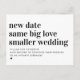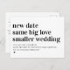 Elegant Modern New Date Same Big Love Smaller Wedding Smaller Micro Wedding Bold Font Typography Heart Downsize Change of Plans Update Save the Date Announcement Postcard