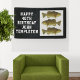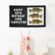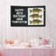 This is a great birthday banner for the avid angler's birthday. Whether the birthday boy or girl is turning eight or forty, the age and name can be personalized. The design features three smallmouth bass a black diamond plate background. A rugged birthday banner.