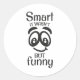 Funny design with a cartoon face as a line drawing and the quote "Smart it wasn't but funny". Good for the young and the old, for children and for adults, for women and for men.