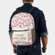 Pattern of mini owls wide-eyed, sit among the cherry blossoms