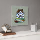 A Ragdoll/Ragamuffin cat perched on a stack of books depicted in this original illustration rendered using ink and coloured pencils. Art by Andie, creator and illustrator of Off-Leash Art™.