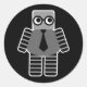 This cute and smart geek robot illustration features a fun robot with grey and black striped legs and arms, thick rimmed black glasses and a stylish tie! This black and white cartoon robot artwork is the perfect gift to buy for robot lovers and anyone who loves original graphic art!