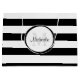 Smart Solid Black and White Stripes With Monogram Large Gift Bag