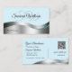 Smart Teal Wavy Silver Decor with Initials QR Code Business Card