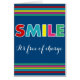 Colourful smile, it's free of charge text design with stripes decoration on blue background