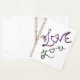 The image shows a hand‑drawn design with the word “love you” written in cursive inside it. The heart has a red outline, a small red heart near the center, green leaf accents, and decorative blue and black line details.