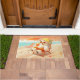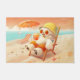 Smile Dog is in full vacation mode—relaxing in orange shorts, sipping a beach drink, and soaking up the sun. Perfect for summer vibes and chill spaces.