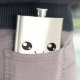 The product is a good size and came exactly as it was pictured. The lid is not attached to the flask, which could be dangerous on drunken nights... The print came out surprisingly well and looks very sharp. Would definitely recommend.