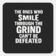 Smile grind gym motivation quote with white text square sticker