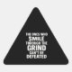 The stickers are small but the color and glossy finish was excellent. I had to rotate the picture until it was upside down so that the picture could fit in the triangle, so don't let the upside down picture discourage you from customizing your own stickers. The colors are nothing but black and white which is not a problem at tall. The glossy finish just made the stickers even better. Overall, the quality of the stickers are great!