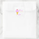 Smile Ice Cream square stickers. Customizable stickers have a cute melting pink ice cream cone with a cherry on top and the word smile in pink letters.