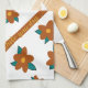 Kitchen towel with large mustard modern digital flowers with teal leaves. Personalize for a beautiful gift of encouragement.