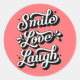 Custom-designed Stickers made for the any Season, Anniversaries, or just because! Smile. Love. Laugh. that illustrates lettering script, sparkles, flourishes, and also represent expression of happiness against negativity and thoughts. A great gift for Birthdays, Anniversaries, or for any other day. Created with one-of-a-kind designed lettering and illustration for those who just love Unique and Novelty Styles! Designed by Katrina Sutton.