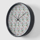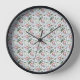 A wall clock with a pattern designed with a smiling Santa Cross face for the Christmas season