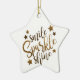 Smile sparkle shine in gold lettering, with decorate stars, ornament that would brighten up anyone's day.