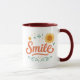 Featuring a vivid sunflower design and the uplifting word “Smile,” this mug makes every sip more joyful.