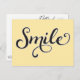 Send a message to tell them Hi with one of our custom postcards. Adorned with a soft yellow background with hand scripted letters the word Smile on the front. Customize the back with your address. View our full selection of greeting cards in our Zazzle store!