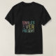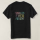 A cheerful t-shirt design featuring the message "Smiles Ever Present" in a vibrant rainbow gradient. Each word takes on a different colour, creating a playful arch across the centre of the shirt. It's a perfect way to spread positivity and brighten someone's day!
