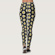 These vibrant leggings feature a deep black background covered with a repeating pattern of white daisies. Each flower has a bright yellow classic smiley face at its center. The design is playful and inspired by 70s retro fashion, perfect for those who love a cheerful and positive style during workouts or leisure time.