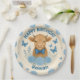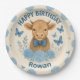 Add joy to your party table with this charming smiling baby cow plate! This design features a cheerful calf in a blue bow tie, surrounded by fluttering butterflies and delicate florals. A heartwarming addition to baby birthdays, farm-themed events, or cow-lover celebrations.
