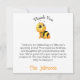 Celebrate the buzz of joy with our charming smiling bee baby shower thank you cards! Perfect for expressing gratitude to friends and family, these adorable cards feature delightful bee illustrations and heartfelt messages. Make your thank you a sweet reminder of the love and support during this special time. Ideal for any bee-themed baby shower, these cards are sure to make recipients smile. Order yours today and spread the love!