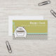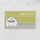 Oven or stove with slight smiling appearance, steaming fun bubbles on this personal or private chef, caterer or catering, cooking class or culinary instruction business card. White oven with open door, steaming bubbles on a nifty retro colour scheme.