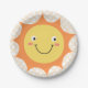Smiling yellow gold cartoon sun face for a fun children's birthday or outdoor garden party with white polka dots over an antique goldenrod, off-white background, or change the background to any colour when you "click to customize further".