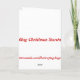 This funny Christmas card features a smiling white Christmas snowman with black buttons and a top hat. He looks like one cool gent and would love to help you spread the joy of Christmas this year. The background is a festive shade of green. There is a funny joke on the front and inside of the card in customizable red text so you can change it if you wish or leave it as it is and send it to anyone that enjoys a good laugh.