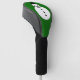 This awesome golf driver cover features a smiling white Christmas snowman with black buttons and a top hat. He looks like one cool gent and would love to help you spread the joy of Christmas this year. The background is a festive shade of green.