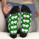 This awesome pair of patterned crew socks features a smiling white Christmas snowman with black buttons and a top hat. He looks like one cool gent and would love to help you spread the joy of Christmas this year. The background is a festive shade of green.