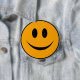 This design features an emoji-style image of a smiling face. These sorts of faces are often seen in smartphone apps.