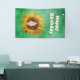 This banner or backdrop is done in shades of green with the smiling face ofa girl with brown hair in the middle of a big yellow fancy sunflower. Customise your text with the template.