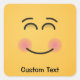 A smiling face, with smiling eyes and rosy cheeks. Custom text.