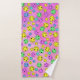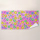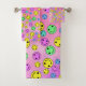 multicolored smiling emoji faces on smeared pink bath towel set