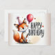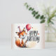 Brighten someone's special day with this delightful birthday card featuring a smiling fox holding a red balloon and wearing a festive party hat. Perfect for animal lovers and anyone who enjoys cute and whimsical designs. This adorable card is sure to bring joy and smiles to the birthday celebration.