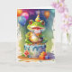 Cute character at celebration party. Blank for your own greeting and personal message inside.