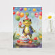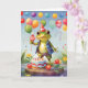 Cute character at celebration party. Blank for your own greeting and personal message inside.