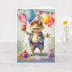 Cute character at celebration party. Blank for your own greeting and personal message inside.
